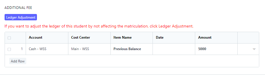 10. On the student’s matriculation, the previous balance will be added on the Additional Fee table.