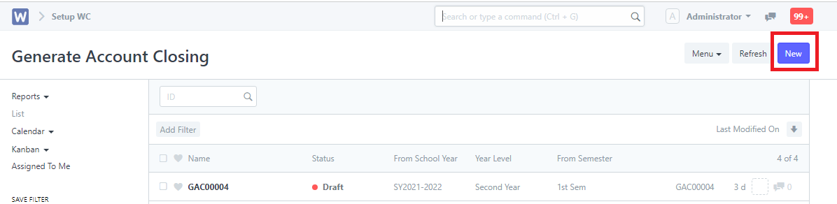 7. Once submitted, go to the student’s ledger by searching Enrollment Ledger WC on the search bar. Put the name of the student on the student field.