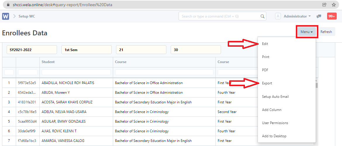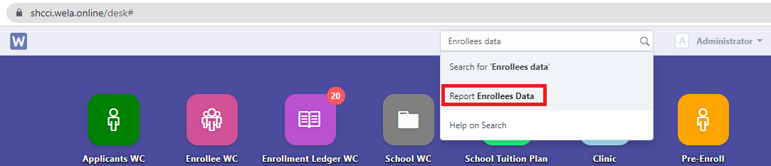 Step 1. In the search bar, search for "Enrollees Data" then select Report Enrollees Data.