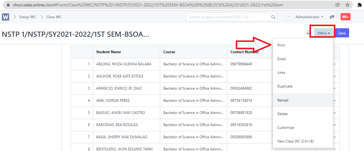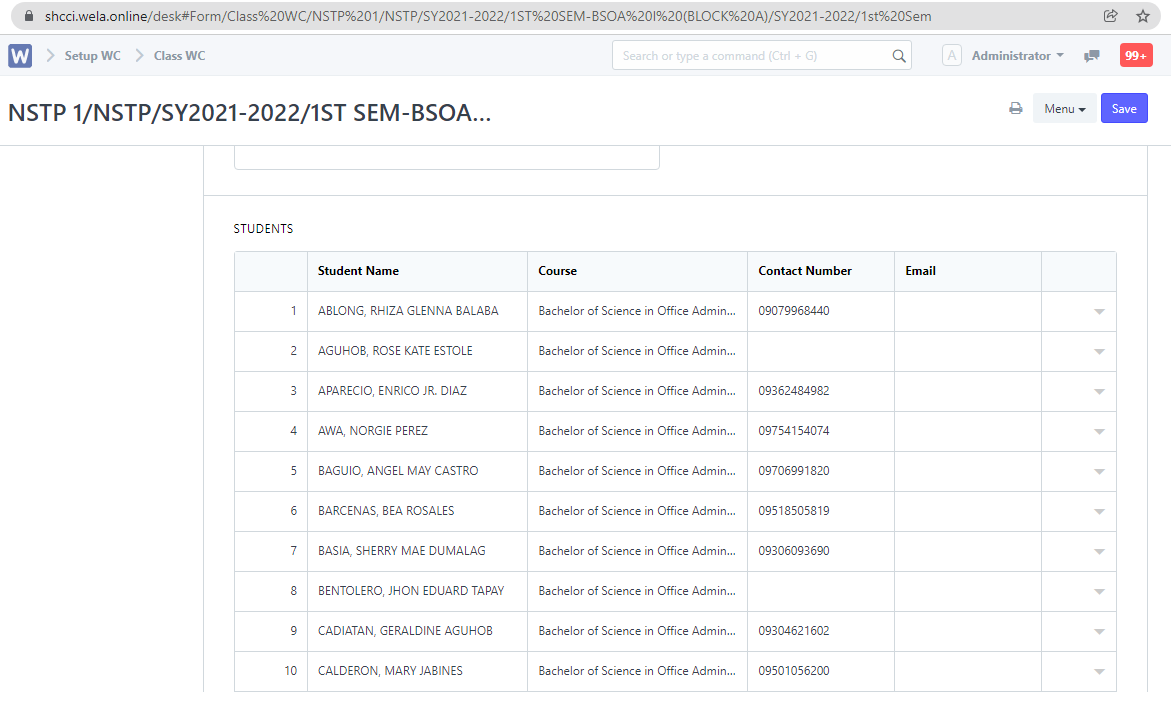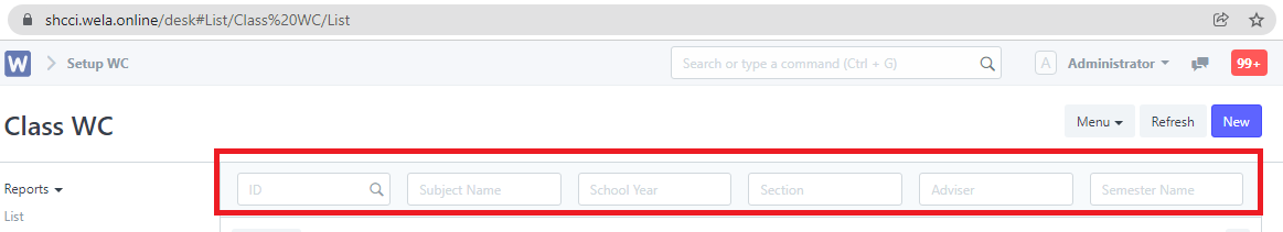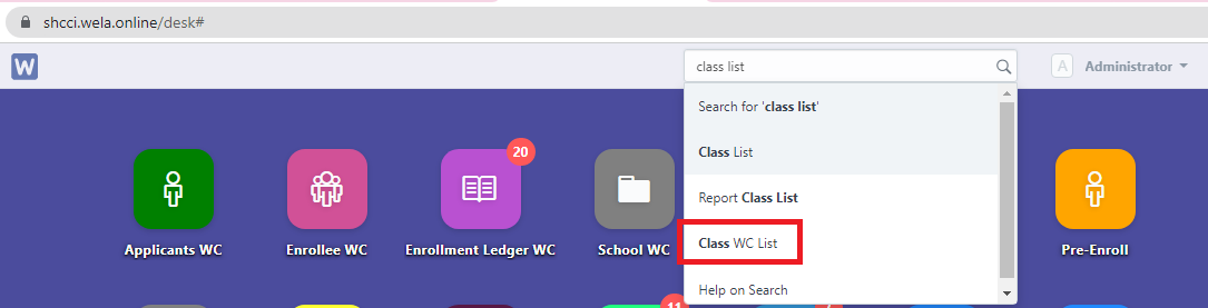 Step 1. In the search bar, search for "Class WC " then select "Class WC List".