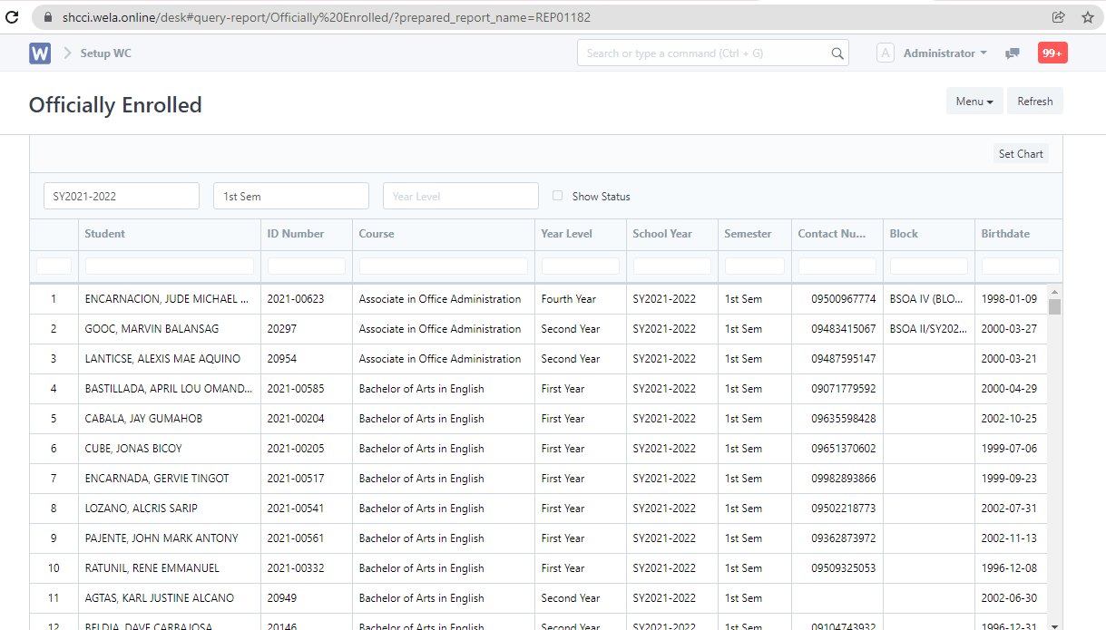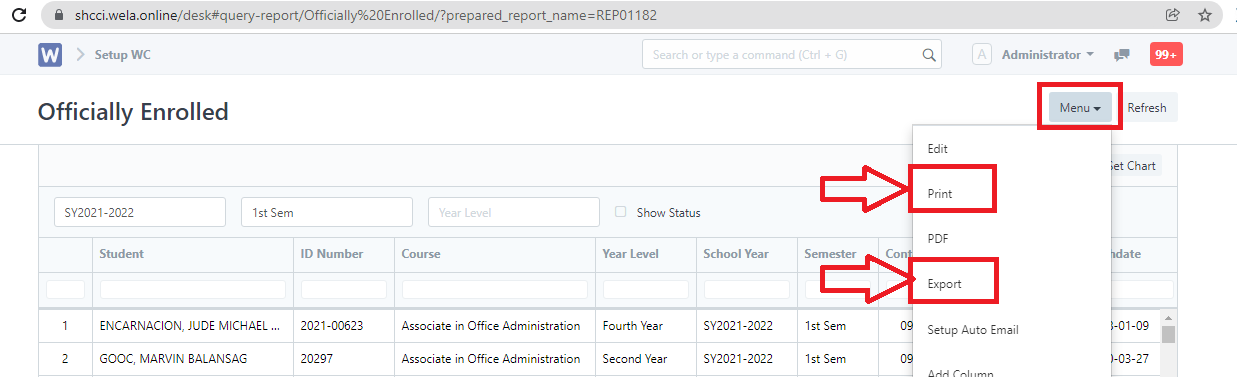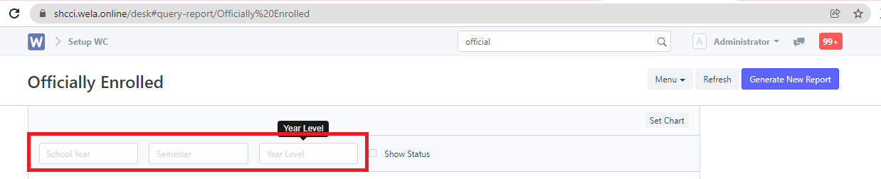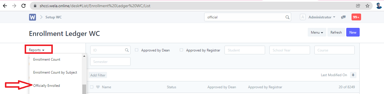 Step 2: In "Enrollment Ledger WC" by click the icon in the desk. Then, click the "Reports" tab located at the left side of the page and select "Officially Enrolled".