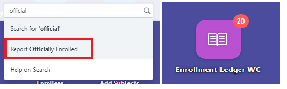 Step 1. In the search bar, search for "Officially Enrolled" or in the "Enrollment Ledger Icon WC"