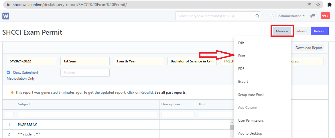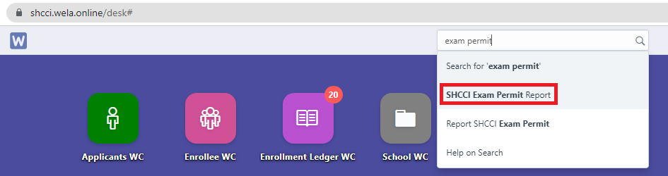 Step 1. In the search bar, search for "Exam Permit" then select SHCCI Exam Permit Report.