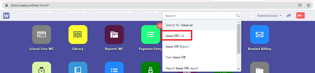 Step 1. In search bar, search for "Issue OR List".