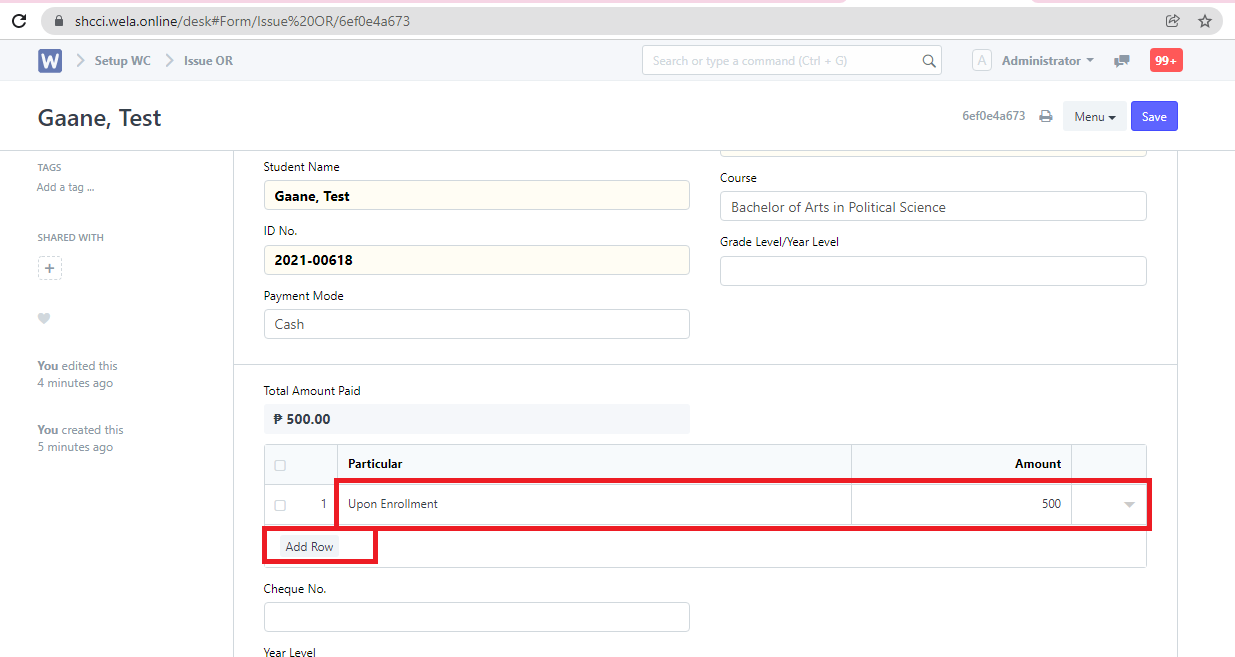 Step 4. In the table below, click "Add Row" for each item/particular to be included in the OR. Input the necessary details after adding row/s.