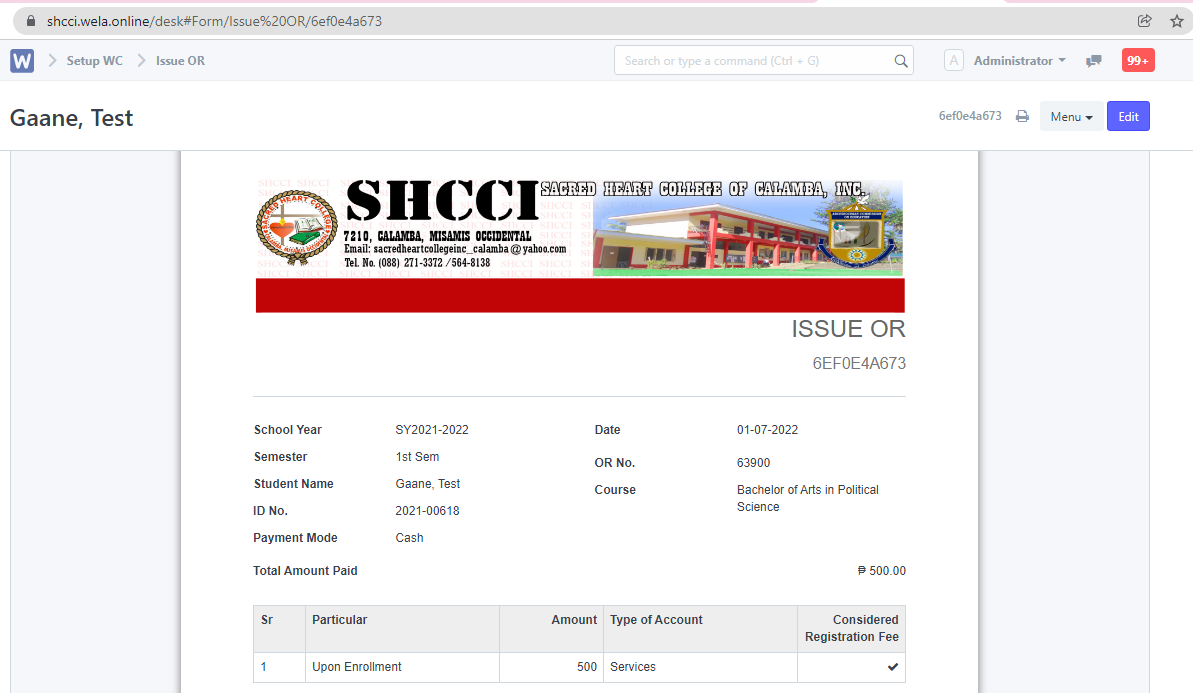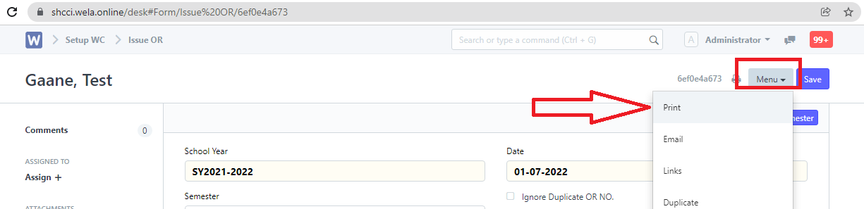 Step 6. To print the OR created, click "Menu" and select "Print".