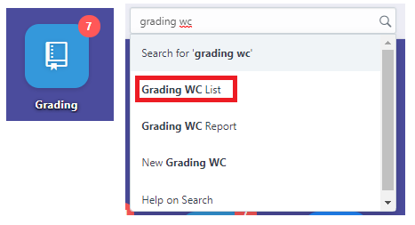 - Search Grading WC on the search bar or click the Applicant WC icon.